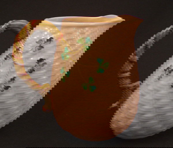 SoldBelleek Black Mark Creamer & SugarClover / shamrock basket weave pattern with 3rd black marks 1926-1946. Excellent condition. Creamer 4" H approx. Sugar 2" H x 3.5" dia. approx.See Sold Price
