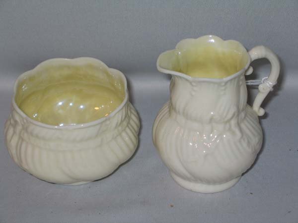 BELLEEK CREAMER/SUGAR. BLACK MARK