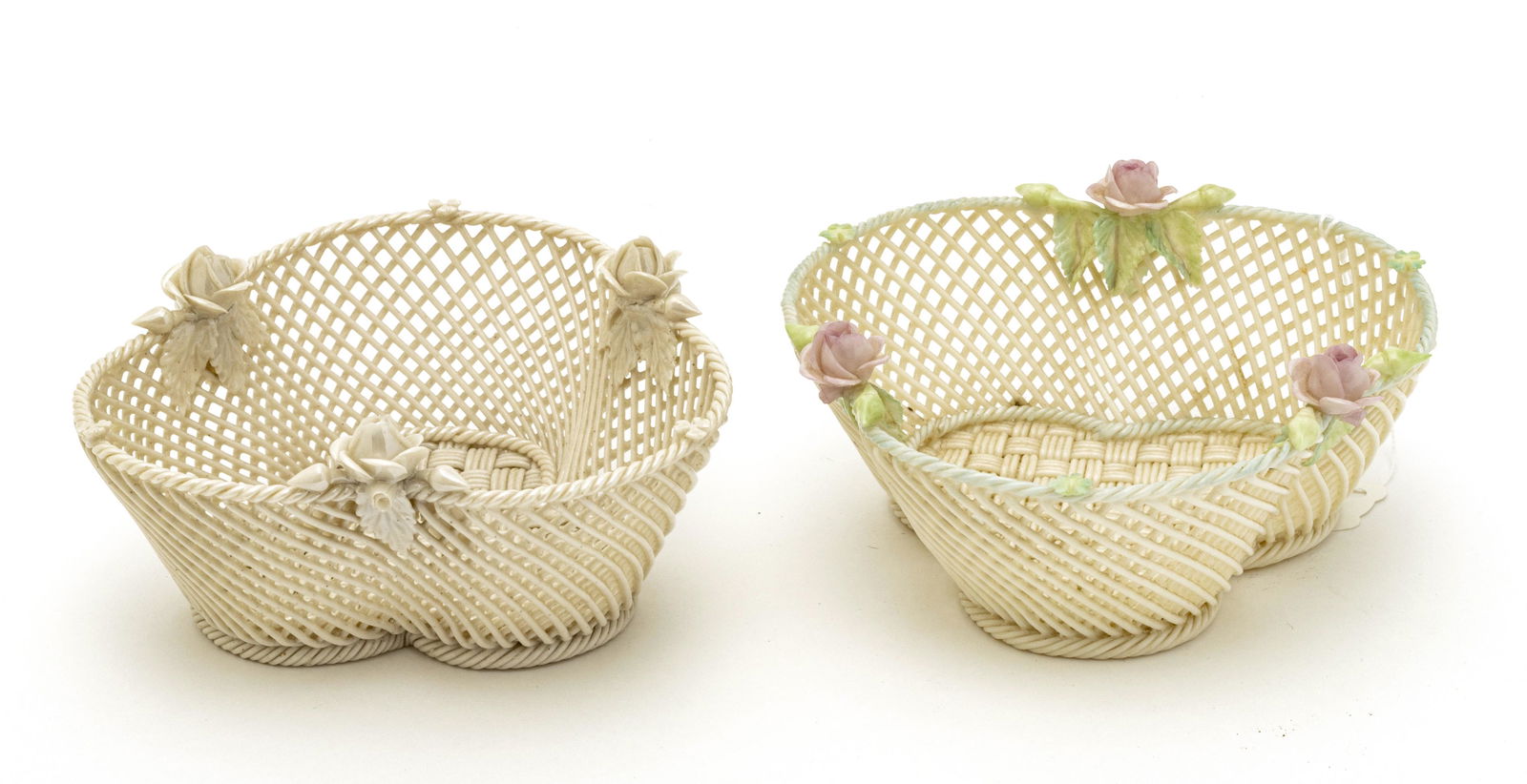 BELLEEK PORCELAIN BASKETS, TWO DIA 5"