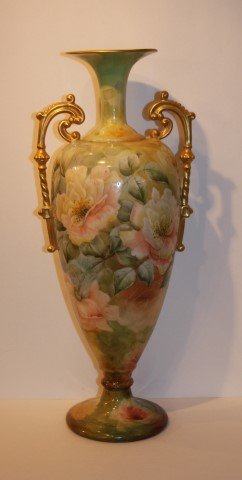 Four Belleek Porcelain Vases, to include two double fish vases, (repaired); a small fish vase; alongFour Belleek Porcelain Vases, to include two double fish vases, (repaired); a small fish vase; along with a radish form vase; all having black marks; height of shortest vase 12 inches, height of talle