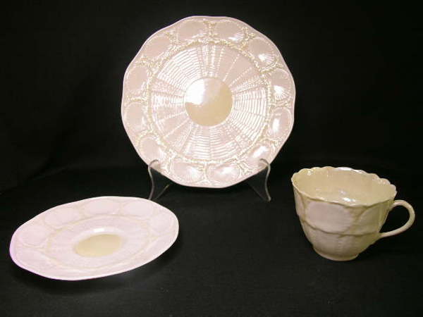 BELLEEK SHELL PATTERN CUP/SAUCER AND LUNCHEON PLAT