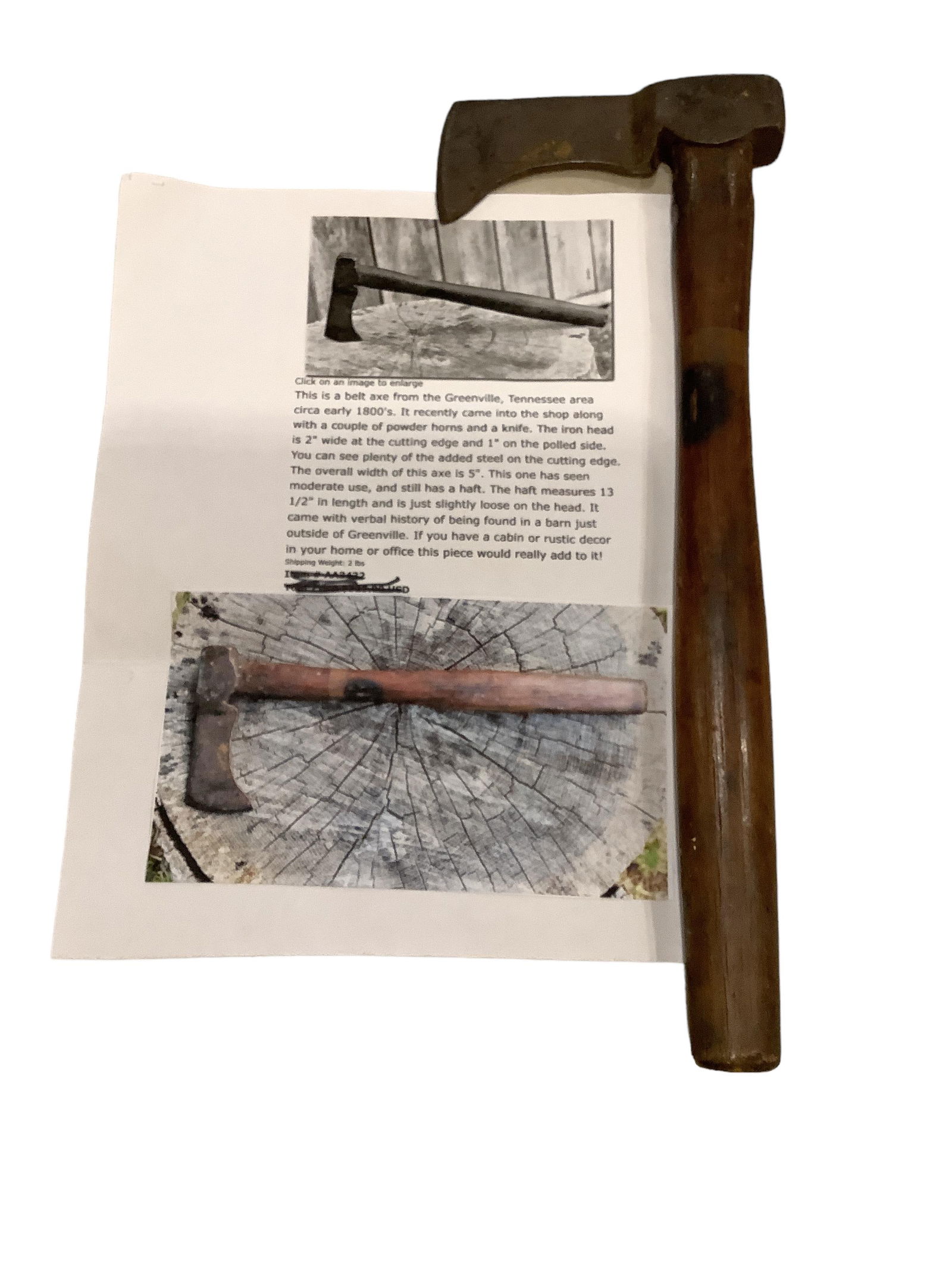 Lot of 2 antique wooden handled axes incl 1 w wire wrapped handle - 13 1/2" & 18 1/2" longFlying Pig Auctions4.7(395)$325(6 bids)24 mins Left