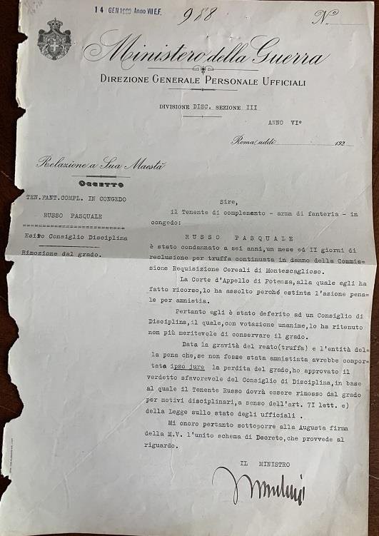 Benito Mussolini- Signed Italian Document from the 1920