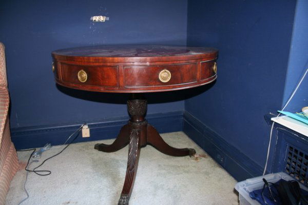 An Antique Regency Style Drum Table6 days LeftVintage Chippendale Style Carved Mahogany Leather Top Game TableMahogany Round Drum Table With Leather Inlay and DrawersMar 01, 2026Mahogany One Drawer Drop Leaf TableMar 04, 2026Mahogany End TableMar 04, 2026Kindel Winterthur Mahogany Revolving Drum Table with Dovetailed Drawers23 hrs LeftEnglish Regency Leather Top Mahogany Drum TableMar 07, 2026Cherry Drop Leaf Dining Table With Two LeavesMar 04, 2026Cherry Queen Anne Style One Drawer End TableMar 04, 2026Vintage Henredon Leather Topped Rotating Table With DrawersCherry Drop Leaf One Drawer Table By StattonMar 04, 2026Mahogany Kidney Shape Dry Bar Tea Liquer Curio Cabinet Table2 days LeftCherry Drum TableMar 04, 2026Mahogany Inlaid One Drawer Drop Leaf TableMar 04, 2026A large George III style mahogany drum table, 20th century5 days LeftFederal Inlaid Game Table, mahogany veneer, brass hinged top, wooden hinged gateleg support, fine4 days Left