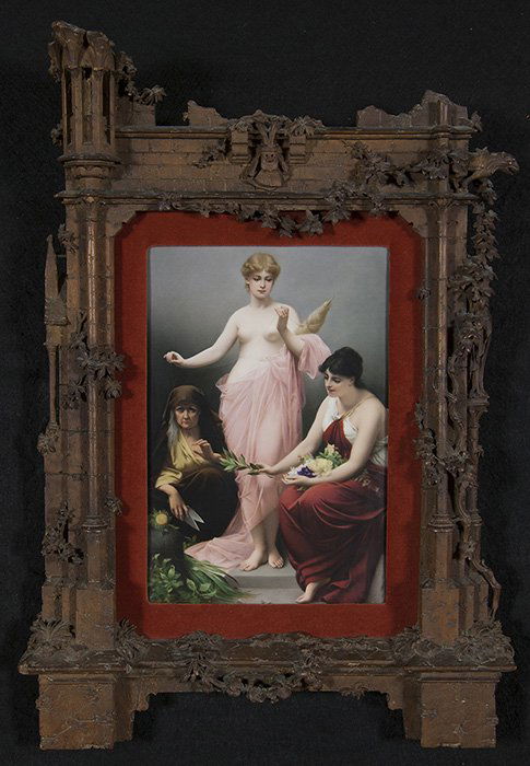 SoldA MONUMENTAL BERLIN KPM HAND PAINTED PLAQUE, FRAMEDA MONUMENTAL GERMAN BERLIN (K.P.M.) RECTANGULAR PORCELAIN HAND PAINTED FRAMED PLAQUE. plaque size: 15" x 12"See Sold Price