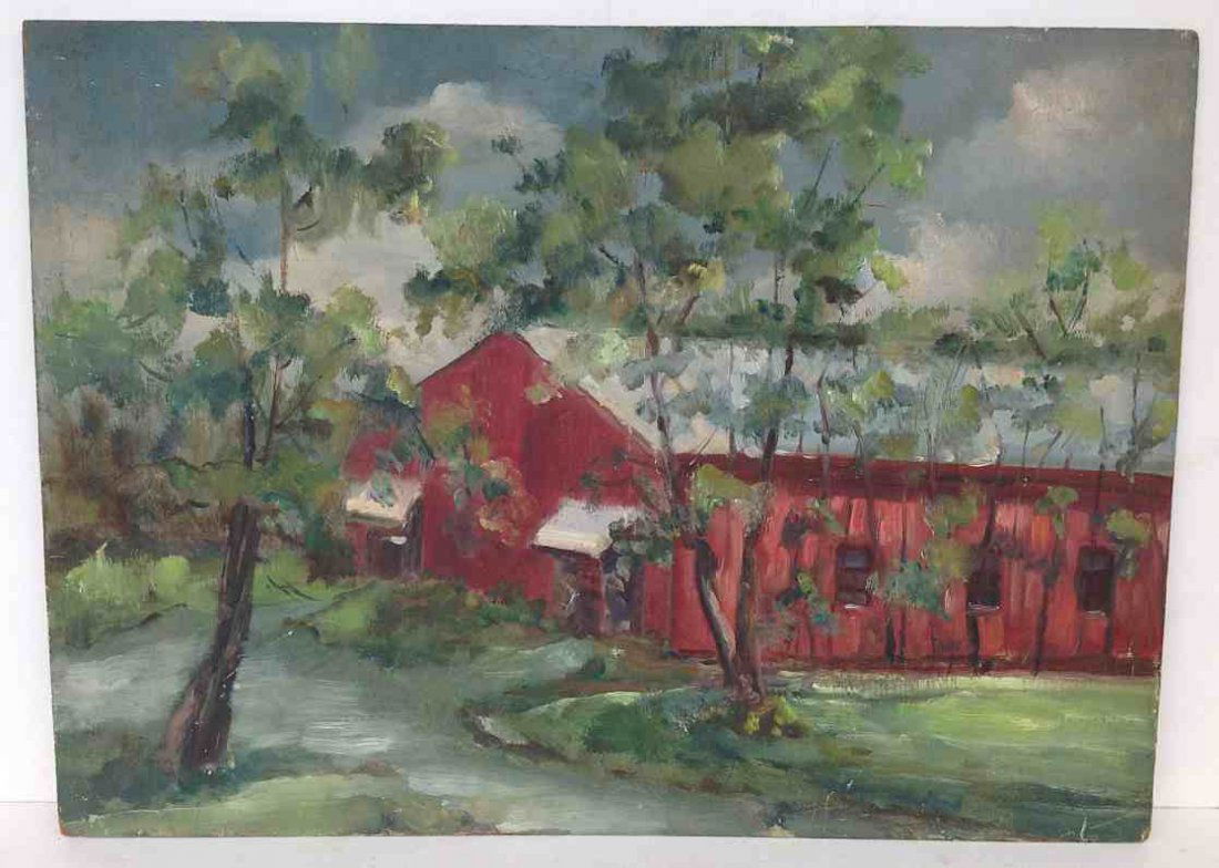 Bernice Wurst o/b landscape with large red barn, signed