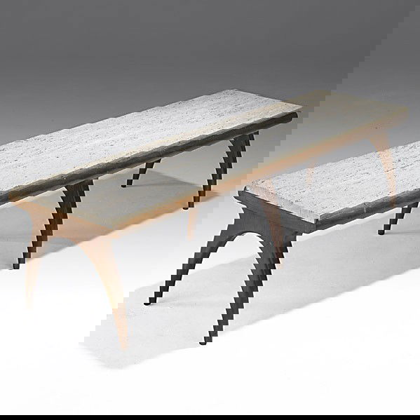 1960s Bertha Schaefer Walnut Coffee Table with Travertine Inset