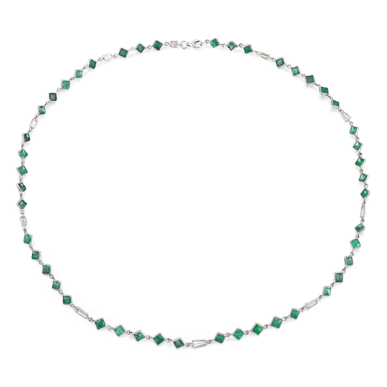 Bezel-Set Emerald and Diamond Necklace