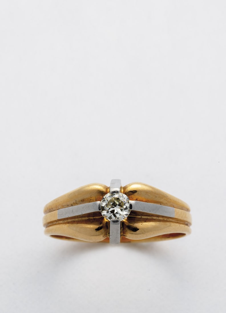 Bicolor gold ring with brilliant-cut diamond solitaire