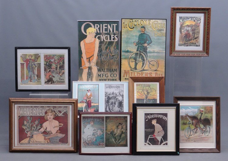 SoldArtwork LotLot (4) early framed bicycle prints. Largest overall 24 1/2" x 20 1/2". Steve Stevens Collection Colorado.See Sold Price