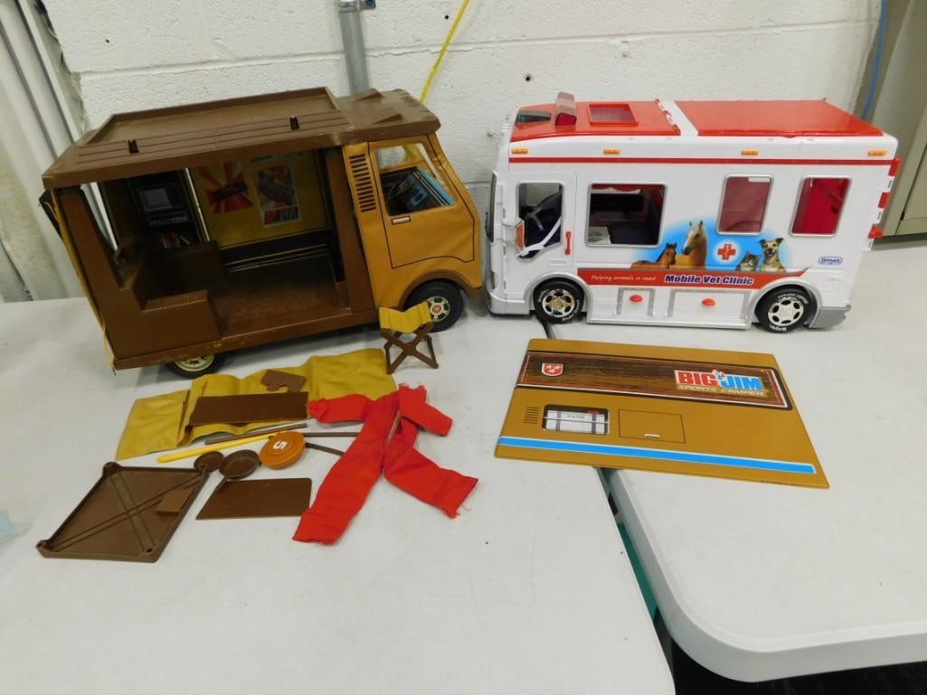 Lot of 2 Vintage Toy Vans incl 1972 Big Jim Sports Camper Action Adventure and Accessories
