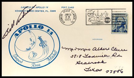 Apollo 16 Lot of 3 NASA Signed Photos, Including 2 MoonwalkersFeb 18, 2026220 - Collection of Early to Mid Mission Space Shuttle Era Event CoversFeb 14, 2026Apollo 16 Young & Duke Signed Cover & Special Honorary Cancelled CoverFeb 14, 2026Apollo 11 Full Crew Signed ‘Type 1’ Insurance CoverFeb 14, 2026STS-6 Crew Signed Launch Cover with Tracking Station ManagerFeb 14, 2026Rare Apollo 8 Astronaut William Anders Signed Christmas CoverFeb 14, 2026ASTP Full US/USSR Signed CoverFeb 14, 2026Apollo 16 Crew Signed Insurance CoverFeb 14, 2026Apollo 11 Signed Cover with Anniversary Pass & CheckFeb 14, 2026Dr. Maxime A. Faget (NASA / V-2) Signed CoverFeb 14, 20262 - "Inventor of the Transistor Effect" William B. Shockley Signed CoversFeb 14, 2026John Glenn & Harry Howard "Lord of Perth" Signed CoverFeb 14, 2026Apollo 13 Cover from the Fred Haise's Personal CollectionFeb 14, 2026Jim Lovell Signed NASA Apollo First Day Cover BECKETT Certified4 days LeftGus Grissom Signed MR-4 "Man-In-Space" Launch CoverFeb 14, 2026Dual-Signed NASA Apollo FDC by Charles Conrad Al Worden Beckett Certified5 days Left