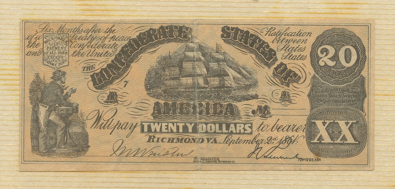 CONFEDERATE STATES CIVIL WAR $20 OBSOLETE CURRENCY / NOTES, LOT OF SEVENMar 06, 2026CONFEDERATE STATES CIVIL WAR $100 OBSOLETE CURRENCY / NOTES, LOT OF TWOMar 06, 2026VIRGINIA TREASURY CIVIL WAR $1 OBSOLETE CURRENCY / NOTES, LOT OF 12Mar 06, 20261861 Confederate States of America $20 Note. Richmond, September 2, 18615 days LeftMS61 1862 T-42 $2 Confederate CSA PCGS Currency3 hrs Left1899 US $1 Black Eagle Silver CertificateMar 07, 2026Confederate States of America. Group of Two [2] Twenty Dollars Banknotes.Mar 11, 2026Confederate States of America, 300 Dollars Interim Depostory Receipt.Mar 11, 2026VF25 1861 $20 Confederate States of America T-18 CSA PMG2 days LeftCONFEDERATE STATES CIVIL WAR $500 OBSOLETE CURRENCY / NOTEMar 06, 2026Confederate States. 3 x 20 Dollar Banknotes [3].Mar 11, 2026Confederate States of America. Group of Two [2] Twenty Dollars.Mar 11, 2026Confederate States of America, Two Dollars T70.Mar 11, 2026NORFOLK, VIRGINIA - BANK OF THE UNITED STATES $20 OBSOLETE CURRENCY / NOTEMar 06, 2026July 25th, 1861 Confederate States Of America $20 Note6 days LeftJuly 25th, 1861 Confederate States Of America $20 Note6 days Left