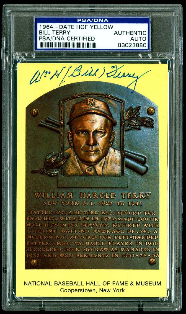 Bill Terry Signed Gold HOF Postcard PSA/DNA Slabb
