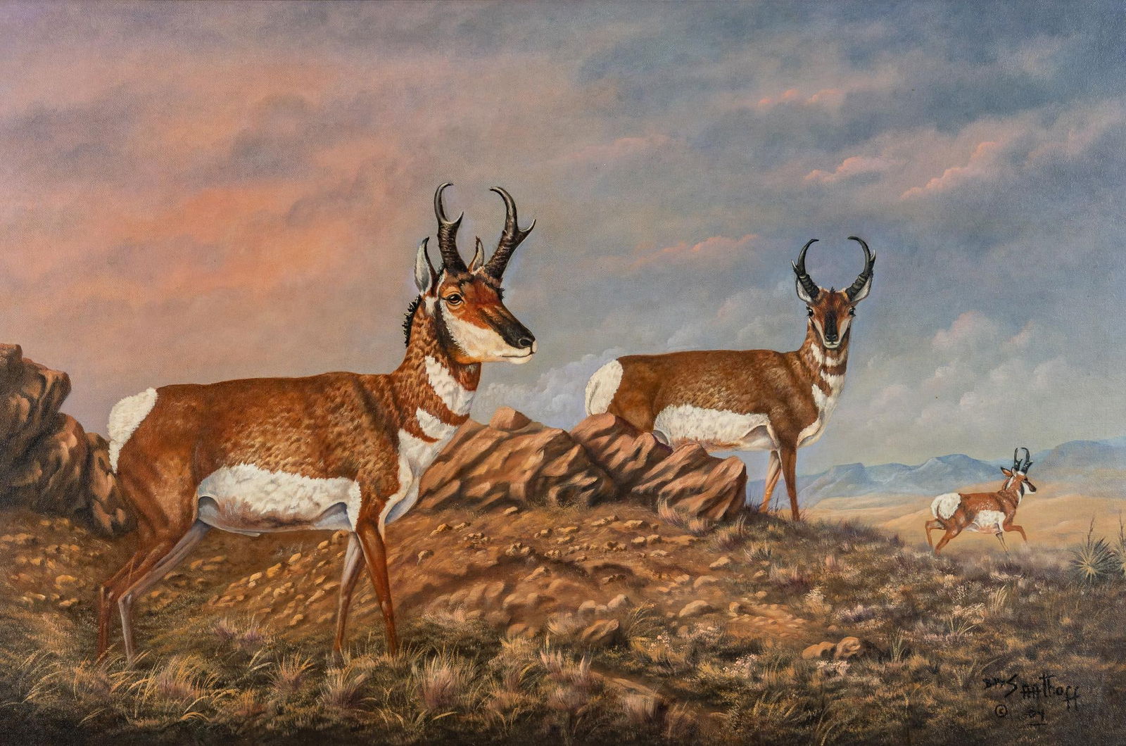 Billy Saathoff, Pronghorns in Landscape, 2004