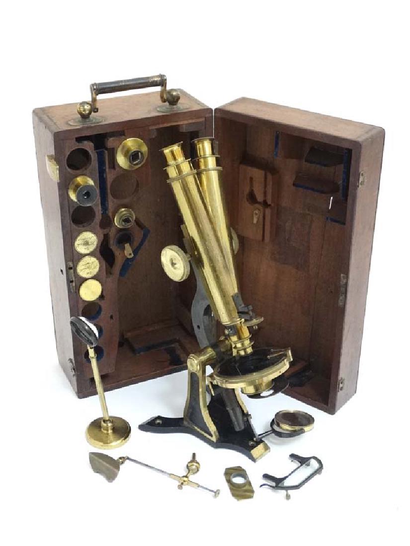 H Crouch Binocular Microscope w Petrographic Prisms10 hrs LeftCASED M. PILLISCHER BRASS MONOCULAR MICROSCOPE London, Mid-19th Century Microscope height approx.Mar 12, 2026Box-Base Cary-Type Compound Microscope, c. 1840Mar 14, 2026Antique Brass Microscope by BAUSCH & LOMB OPTICAL CO. Rochester N.Y. U.S.A. Serial No. 2020625 days LeftCASED BRASS ROSS-TYPE STEREOSCOPIC BINOCULAR MICROSCOPE England, Late 19th Century Microscope heightMar 12, 2026CASED BAUSCH & LOMB PHYSICIAN'S MODEL MICROSCOPE New York, Late 19th Century Microscope height 12".Mar 12, 2026Compound Microscope by Carl Zeiss in Jena, 1884Mar 14, 2026CASED BAUSCH & LOMB MICROSCOPE New York, Early 20th Century Case height 15". Width 8.25". DepthMar 12, 2026Culpeper-Type Compound Microscope, c. 1800–20Mar 14, 2026Very Early Compound Microscope by Carl Zeiss in Jena, 1864Mar 14, 2026Compound Microscope by Carl Zeiss in Jena, 1894Mar 14, 2026Gould-Type Simple Microscope, Unsigned, C. 184010 hrs LeftRARE SOLAR MICROSCOPE BY W & S JONES London, Late 18th Century Case height 3". Width 10.75". DepthMar 12, 2026CASED J. ZENTMAYER BRASS MONOCULAR MICROSCOPE Philadelphia, Late 19th Century Case height 11.5".Mar 12, 2026ANTIQUE BAUSCH & LOMB MICROSCOPE, C. 19152 days LeftCompound Microscope by Carl Zeiss in Jena, 1885Mar 14, 2026