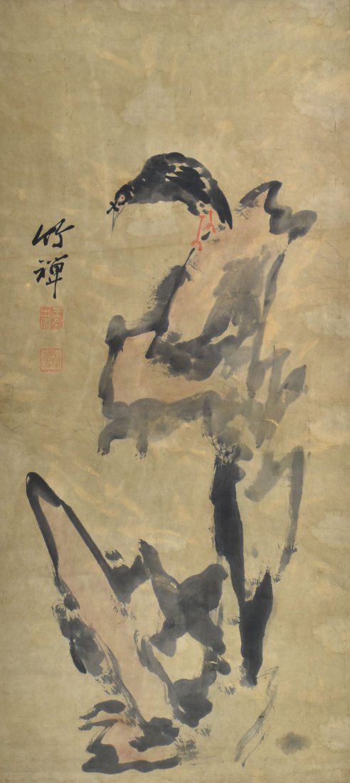 Painting of a Bird & Rock, Zhu Chan (1824 - 1901)