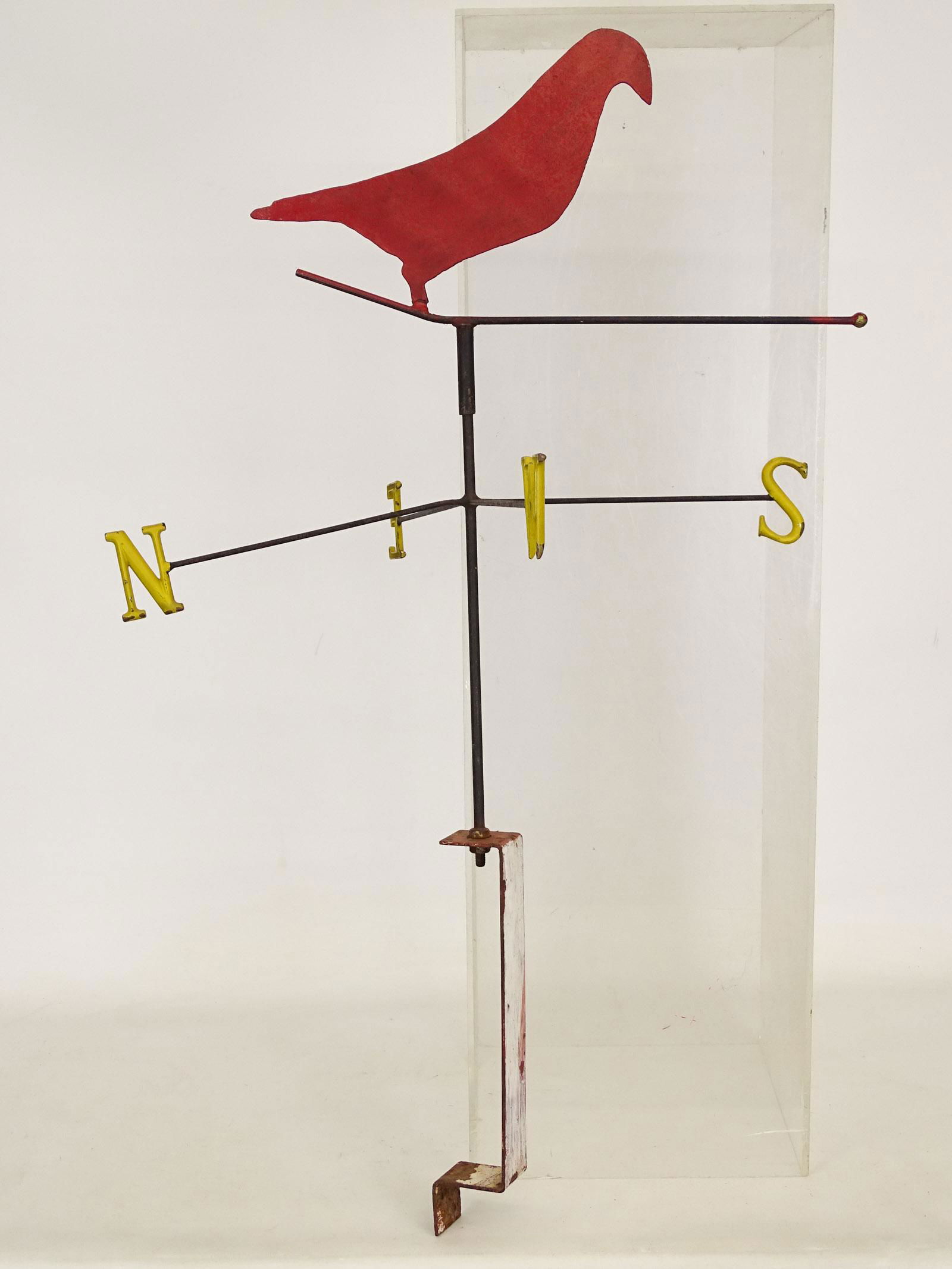 SoldIron bird weathervane detailedIron bird weather vane detailed . Size : 4.60 x 2.90 x 8.60 inch .See Sold Price
