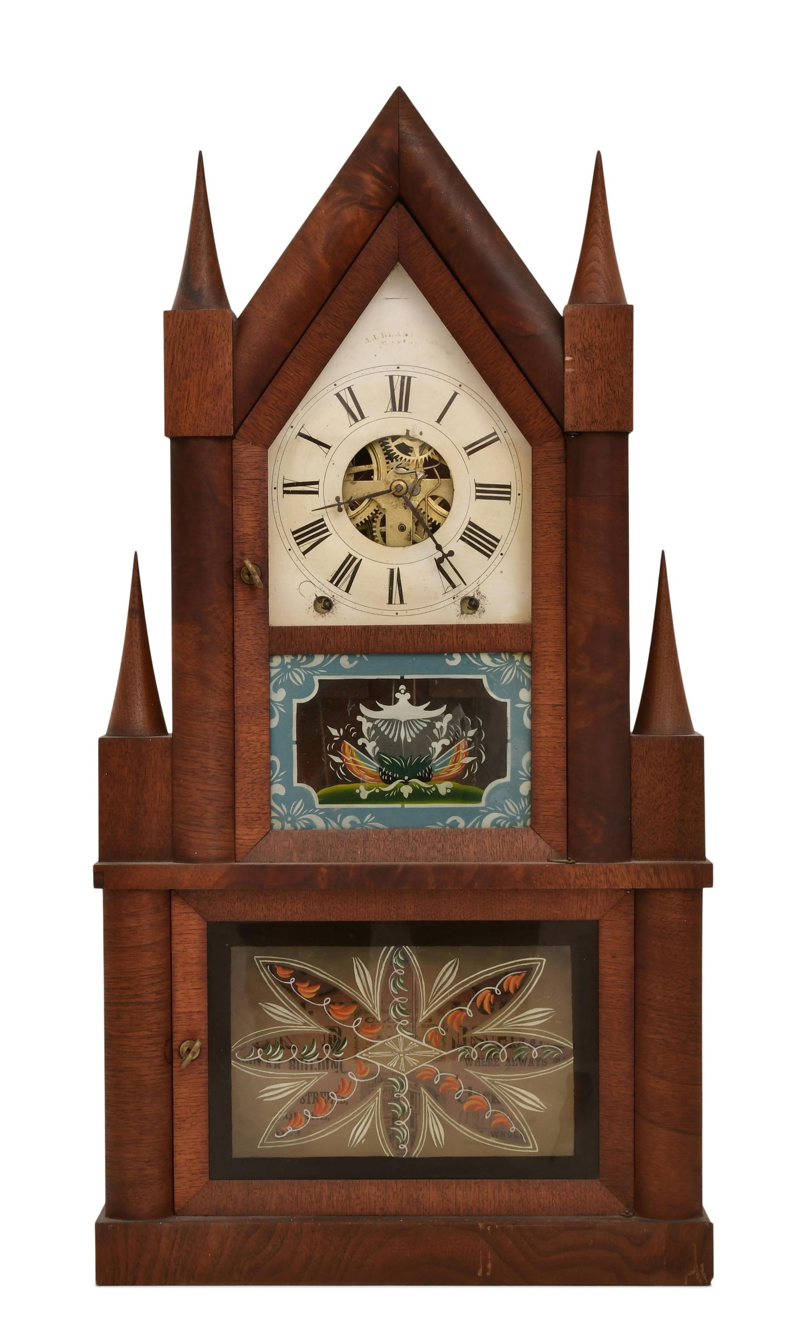 Pillar & Scroll mantle clock, mahogany case, eglomise bottom panel in door, paint decorated face andMar 09, 2026Antique Gilbert Laurel Gingerbread Parlor Mantle Clock16 hrs LeftSligh Thomas Harland Federal Style Mahogany Grandfather Clock966 Lots AwayFederal Inlaid Mahogany Tall Case Clock, with Automaton Movement by Aquila BarberMar 13, 2026Exceptional Gothic Revival Walnut Bracket Wall Clock, Eight-Day Chain FuseeMar 07, 2026A George III mahogany eight-day longcase clock, third quarter of the 18th century,Mar 18, 2026Sligh John Goddard Cherry Grandfather Clock with Beveled Glass and Brass Movement2 days LeftHoward Miller Tempus Fugit Grandfather Clock5 days LeftSeth Thomas Pillar and Scroll ClockMar 07, 2026Sligh Henry Ford Grandfather Clock Moving Moon Dial InlayMar 13, 2026Steeple On Steeple Shelf Clock By Terry & Andrews, Bristol Ct, Circa 1850'sMar 21, 2026Handsome Eli Terry American Federal Pillar & Scroll Clock15 hrs LeftSligh Grandfather ClockMar 14, 2026Eli & Samuel Terry & Eglomise Pillar &Scroll ClockMar 15, 2026Antique Mahogany Steeple Clock5 days LeftPennsylvania Empire Shelf ClockMar 19, 2026