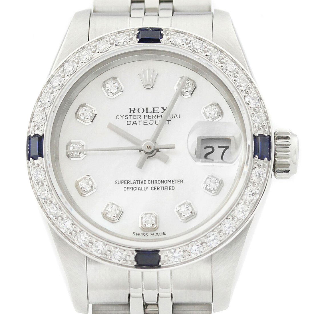 Rolex Ladies Datejust 69174 18K Gold & SS Mother of Pearl Diamond Sapphire Watch