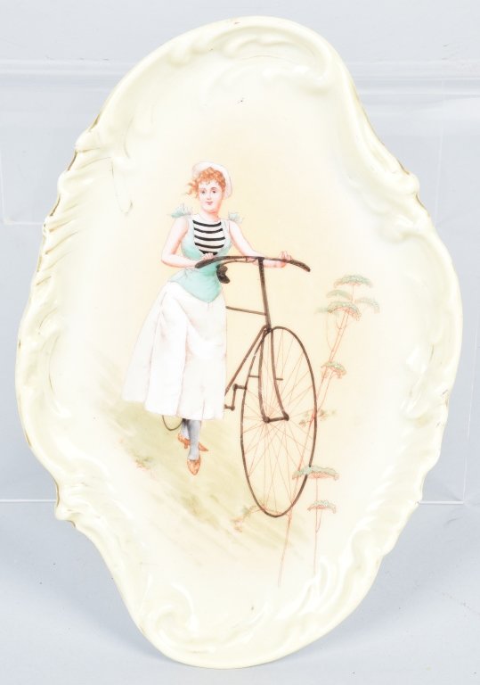 BISQUE CANDY DISH w/ LADY w/ BICYCLE