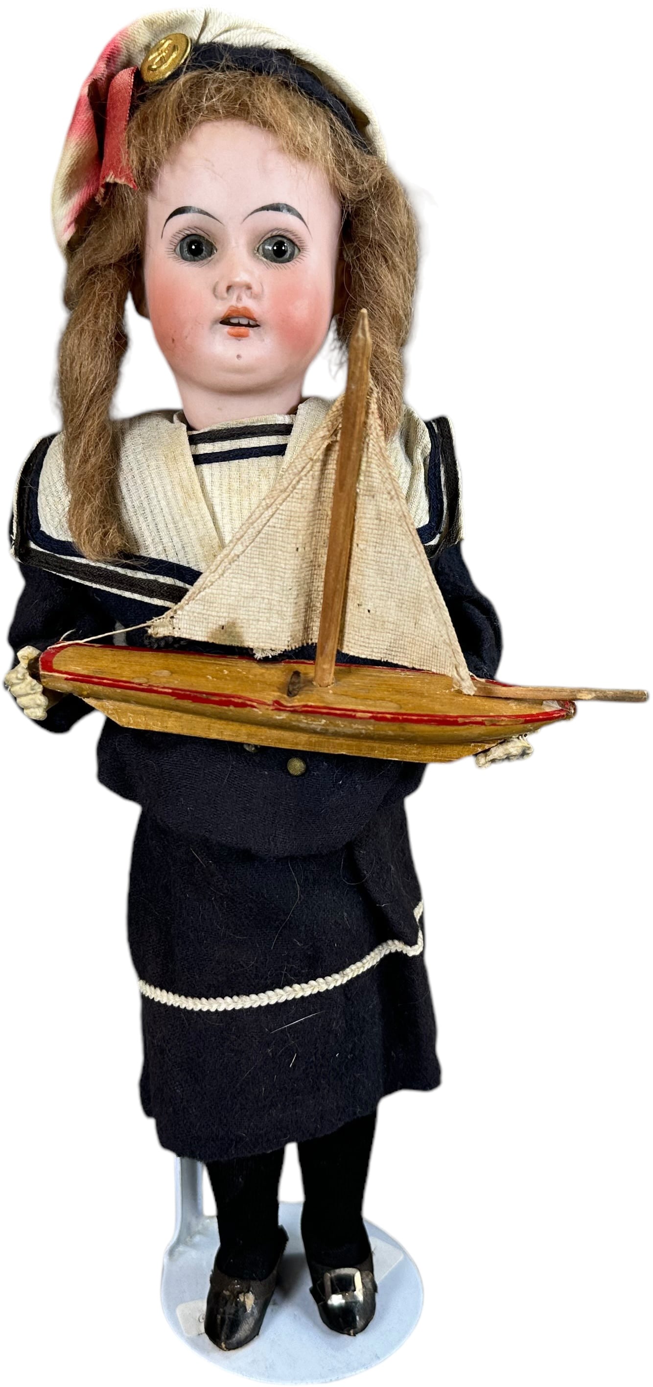 BISQUE DOLL IN SAILOR SUIT CANDY CONTAINER