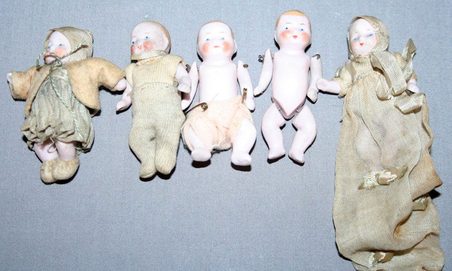 BISQUE DOLLS, DIONNE QUINTUPLETS, C1935, 8 PCS