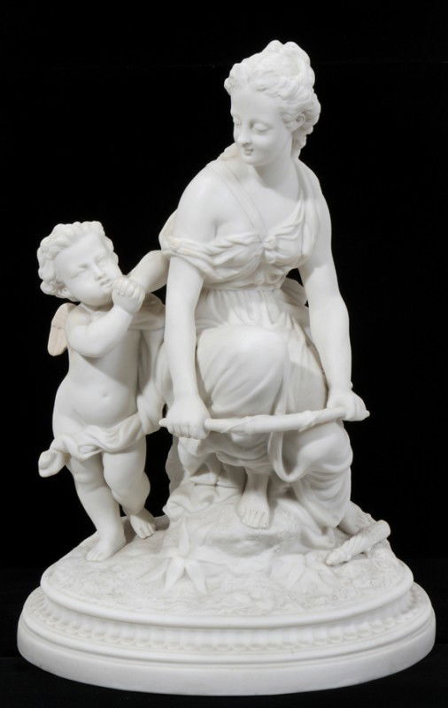 BISQUE FIGURAL GROUP, H 15", L 11"