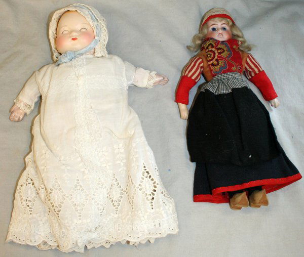 BISQUE HEAD DOLLS, 2 PCS., H 11"
