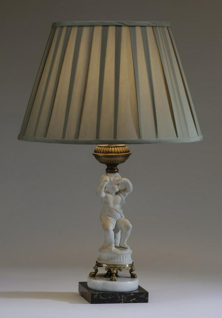 Bisque porcelain putto figural lamp