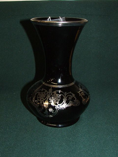 Black amethyst vase silver overlay 8"