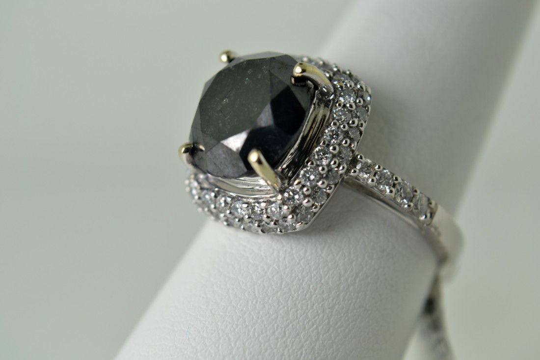 Black/White Diamond Ring 2.18Ct 14K White Gold