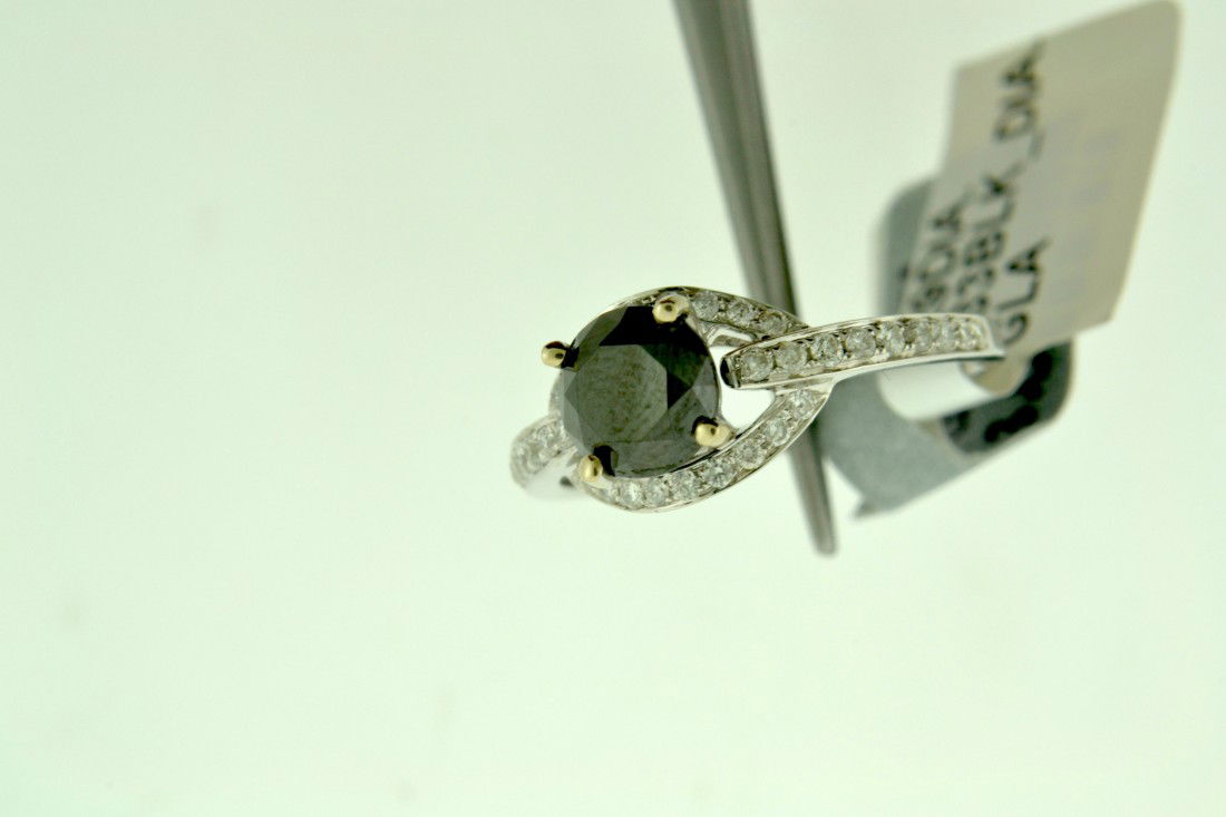 Black/White Diamond Ring 2.18Ct 14K White Gold