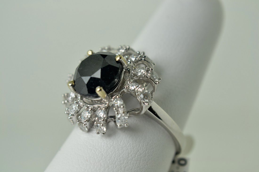 Black/White Diamond Ring 2.18Ct 14K White Gold