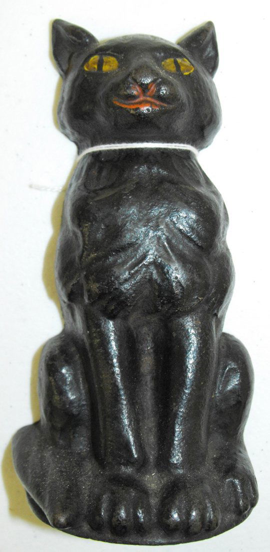 SoldEarly Cast Iron Black Cat DoorstopEarly cast Iron seated hand painted Black Cat Doorstop. Measures 9.5" tall by 5" wide. All invoices must be paid within 24 hours of the sale. We offer multiple shipping options please read the shippinSee Sold Price