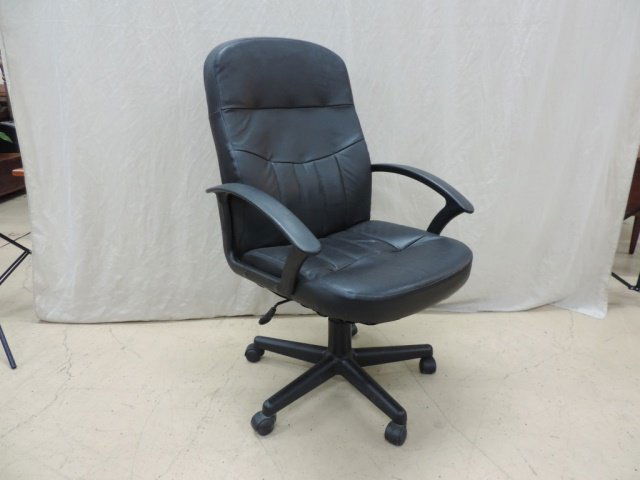SoldComputer Office Chair With WheelsOffice chair is black toned, possibly leather. Piece sits on 5 wheels. Chair swivels. Piece measures approx 33 inches tall 19 inches wide 24 inches deep. Height is adjustable. Chair, office chair, comSee Sold Price