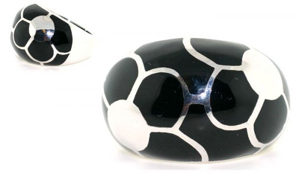 BLACK ENAMEL SILVER RING