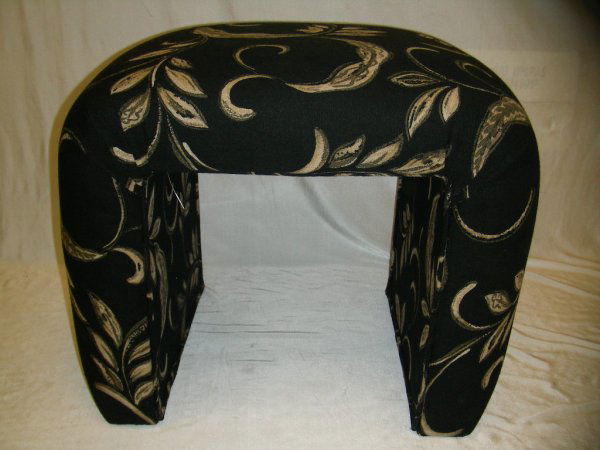 BLACK FABRIC VANITY STOOL W/ TAN LEAF PATTERN