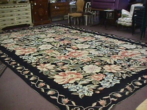 BLACK FLORAL NEEDLEPOINT RUG LARGE