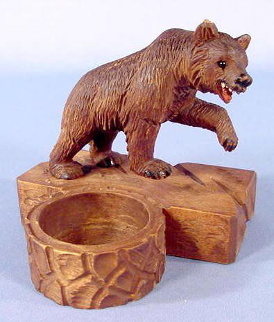 An early 20th century Black Forest carved wood decanter stand modelled as a bear