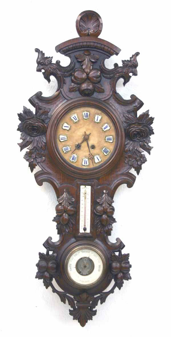 Black Forest Carved Wall Clock with Barometer