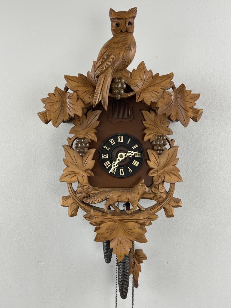 Black Forest Owl/Fox/Grapevines Motif Cuckoo Clock