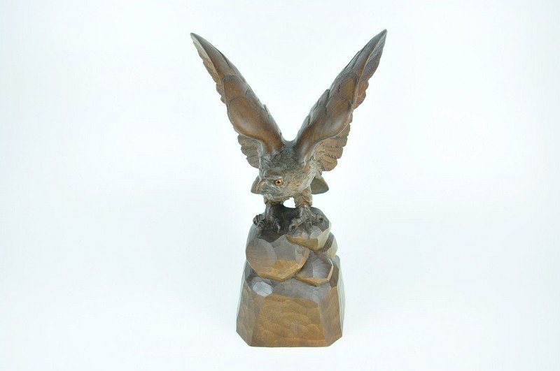 Black Forrest carved Eagle on rocks. Height 13 1/2