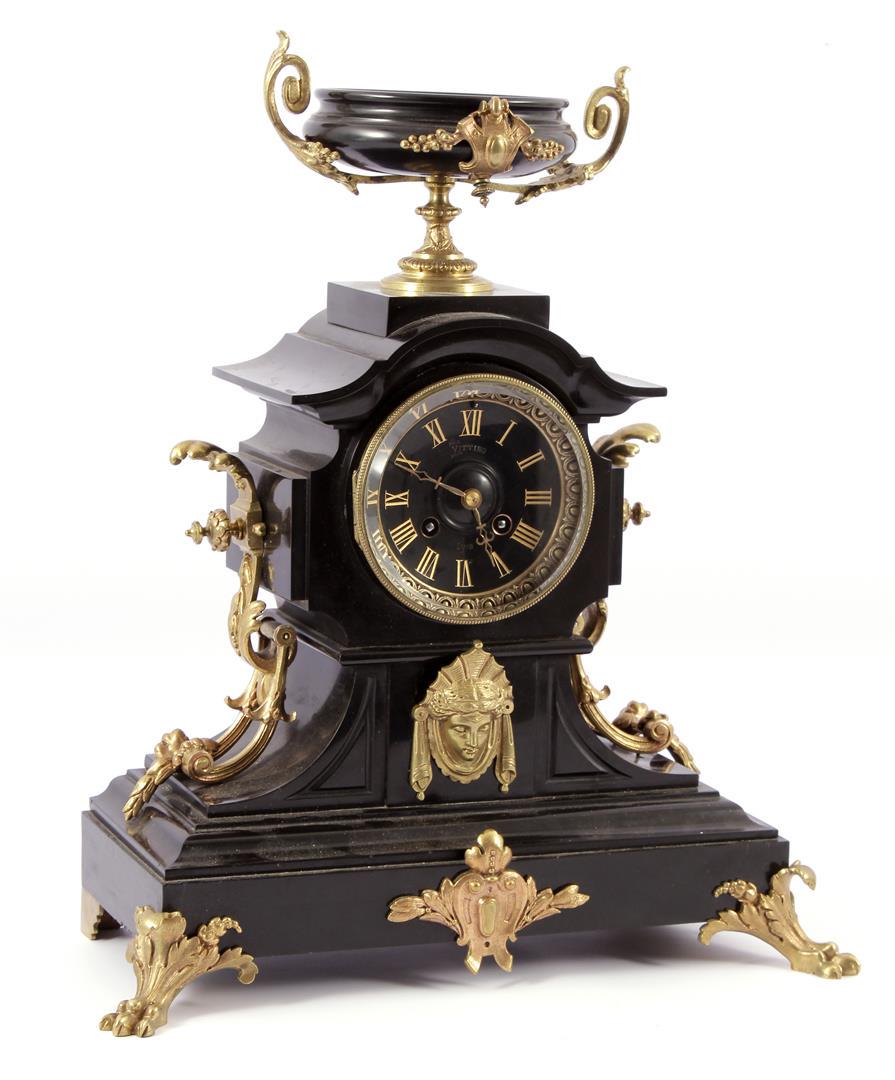 Black French marble mantel clock
