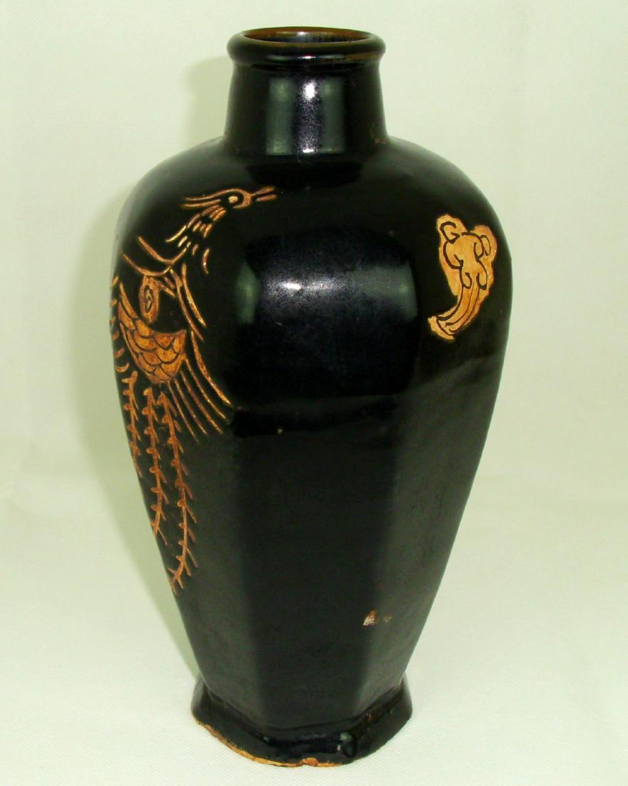 BLACK GLAZE PHEONIX PATTERN VASE