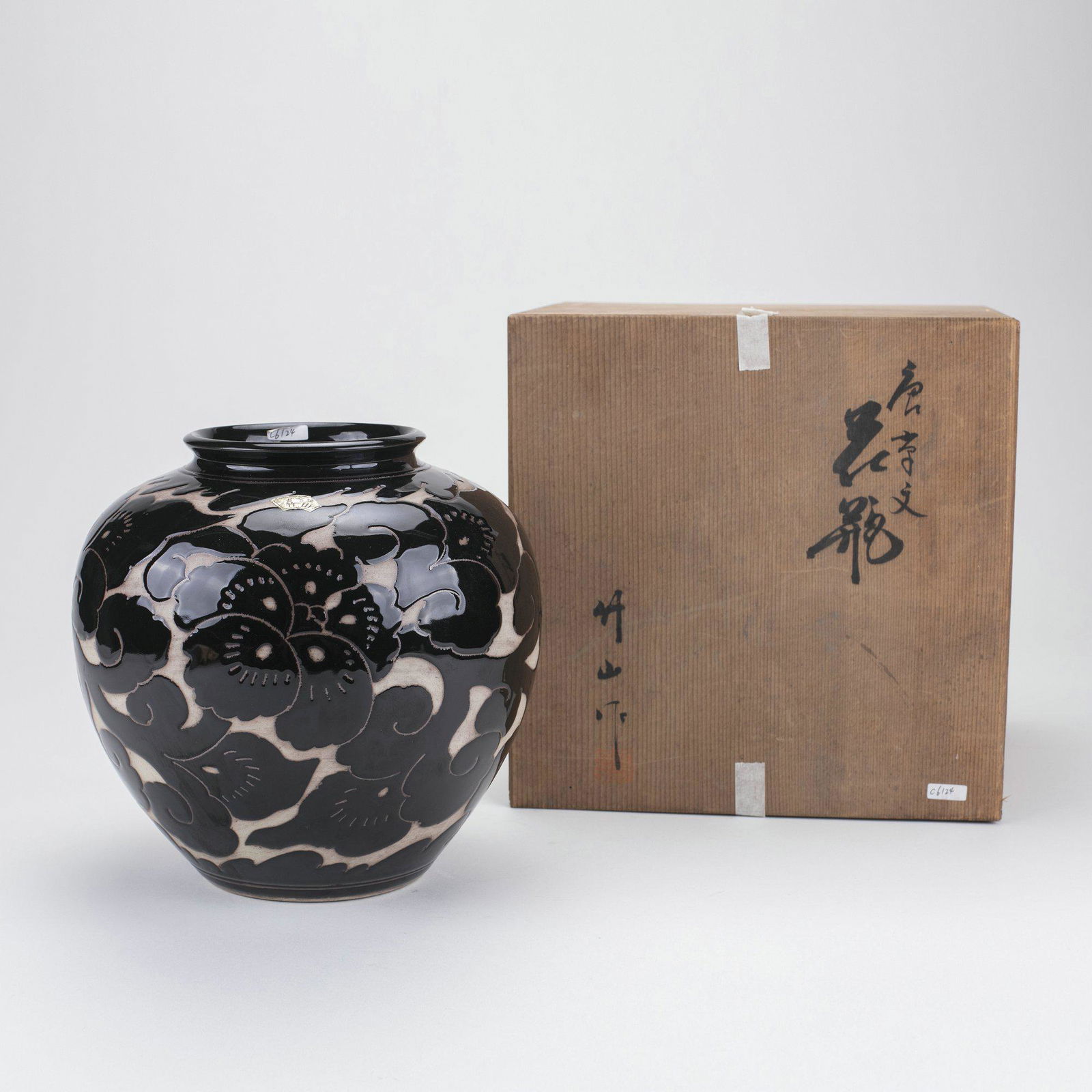 Handmade Asian Antique Style Black Porcelain Flower Jar 15x15x15