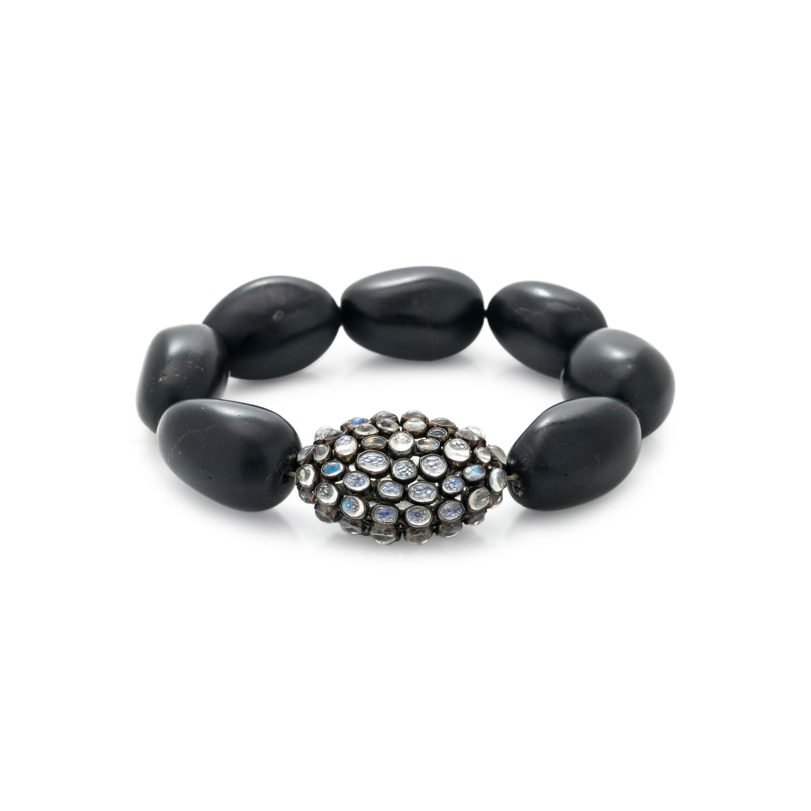 BLACK HARDSTONE AND MOONSTONE BEAD BRACELET
