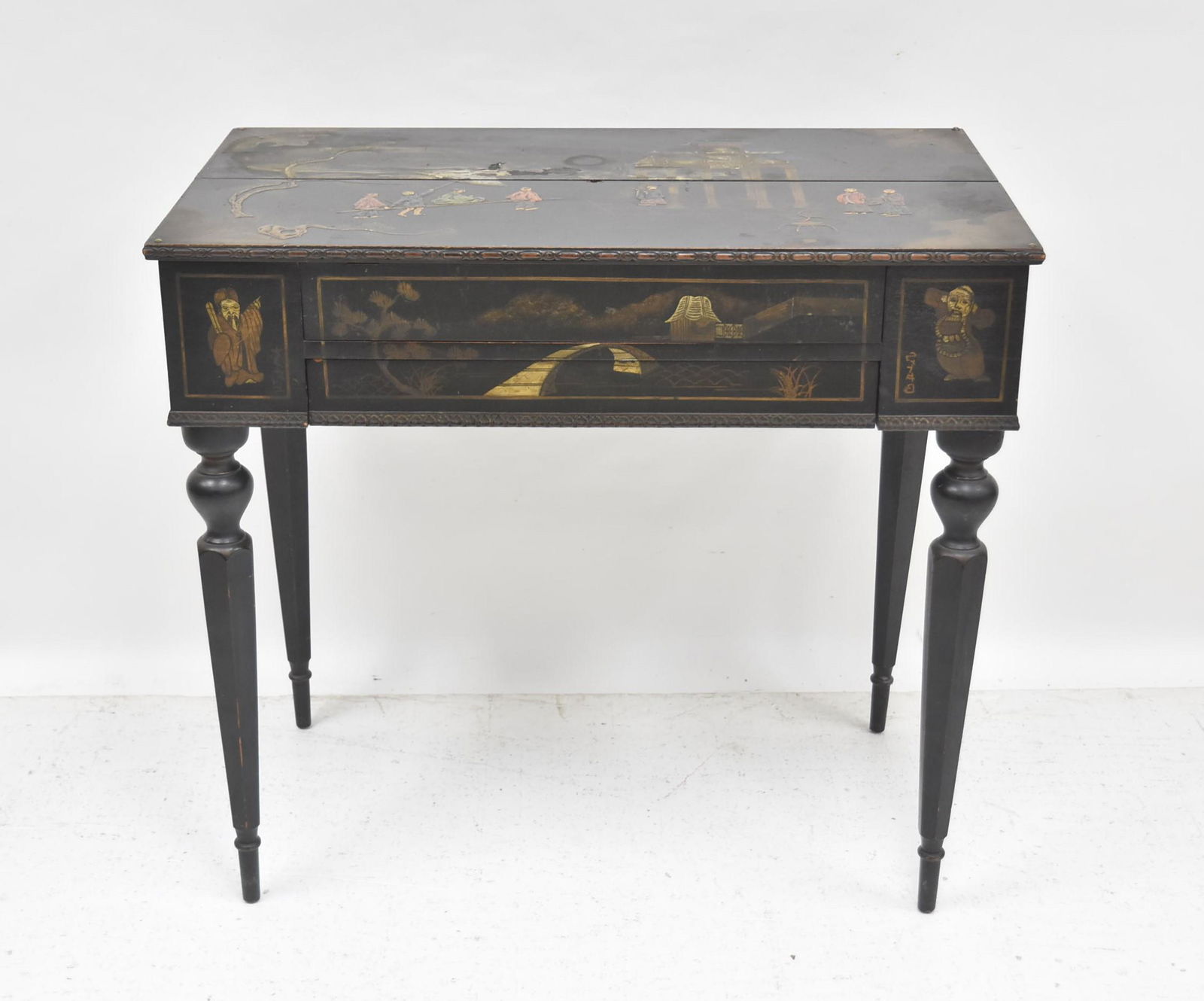 A BLACK AND GILT CHINOISERIE LAQUERED CENTER TABLE, THE TOP POSSIBLY 18TH CENTURY, THE STAND LATERDreweatts Donnington Priory4.4(34)£400