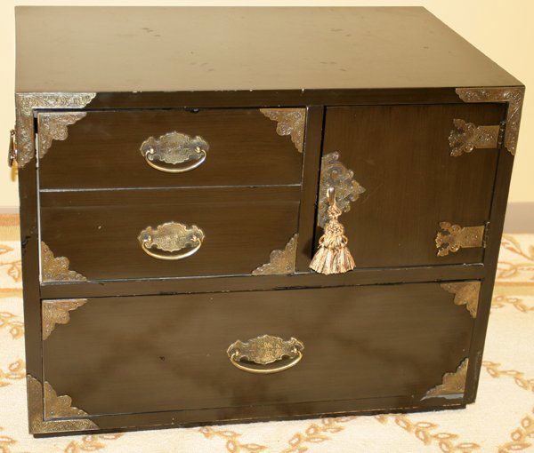 BLACK LACQUER SMALL CHEST, H 21", L 28"