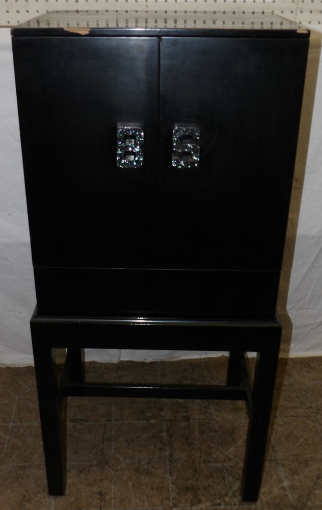 Modern designer deco-style black lacquer cabinet w/ pop-open glass door & bottom drawer. 24w x 18.5Chairish Auctions4.5(10.3k)$1501 day Left